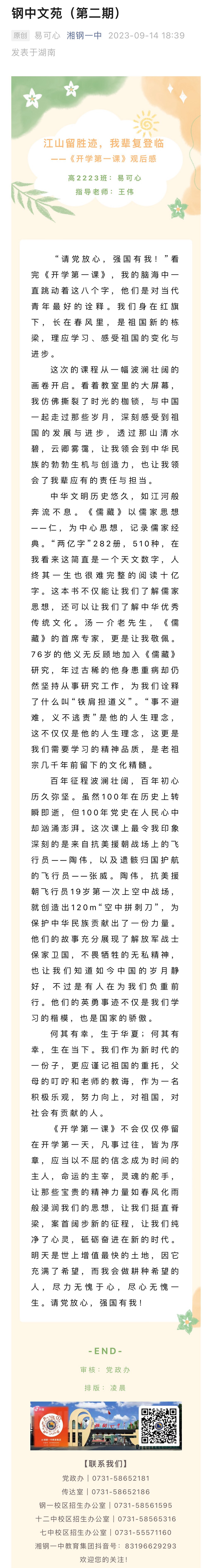 來(lái)源:微信公眾號(hào) | 作者:湘鋼一中教育集團(tuán) | 發(fā)布時(shí)間: 2023-09-14 | 5289 次瀏覽 | 分享到: