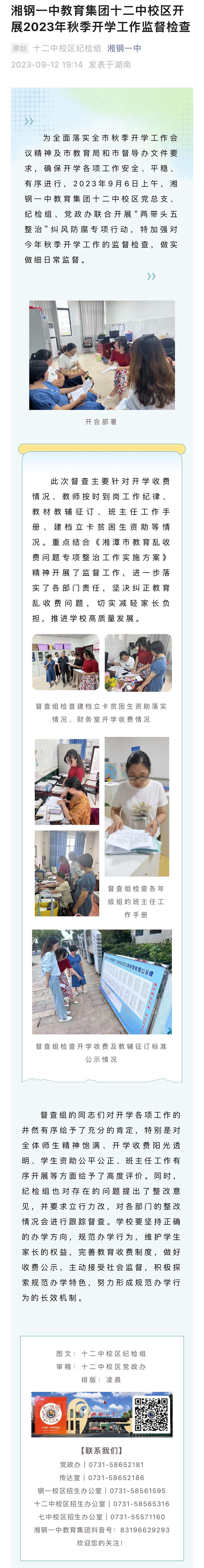湘鋼一中教育集團(tuán)十二中校區(qū)開展2023年秋季開學(xué)工作監(jiān)督檢查
