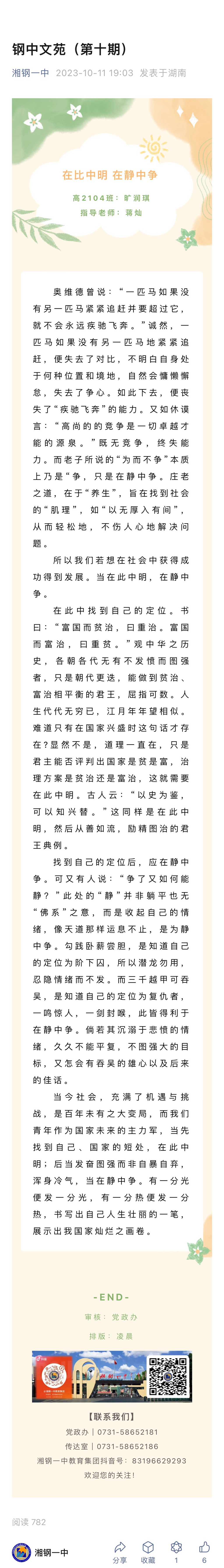 來(lái)源:微信公眾號(hào) | 作者:湘鋼一中教育集團(tuán) | 發(fā)布時(shí)間: 2023-10-11 | 4456 次瀏覽 | 分享到: