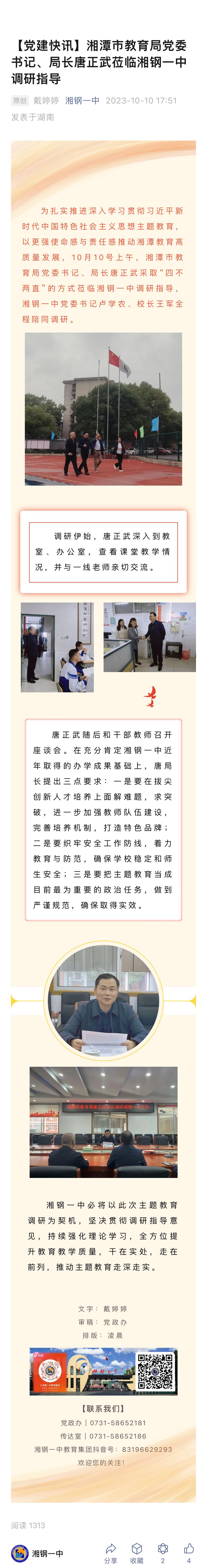 【黨建快訊】湘潭市教育局黨委書記、局長唐正武蒞臨湘鋼一中調(diào)研指導(dǎo)