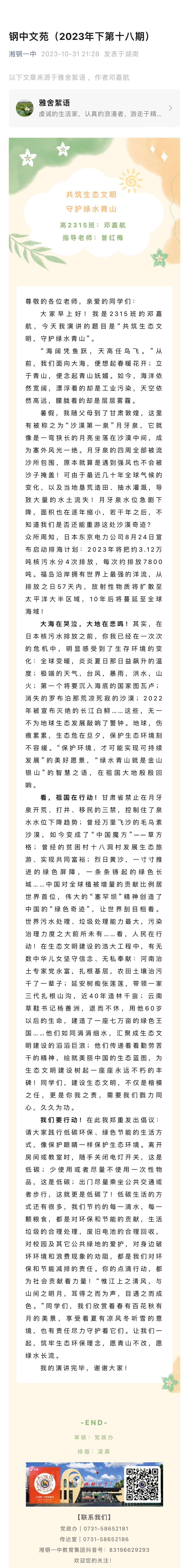 來源:微信公眾號(hào) | 作者:湘鋼一中教育集團(tuán) | 發(fā)布時(shí)間: 2023-10-31 | 1639 次瀏覽 | 分享到: