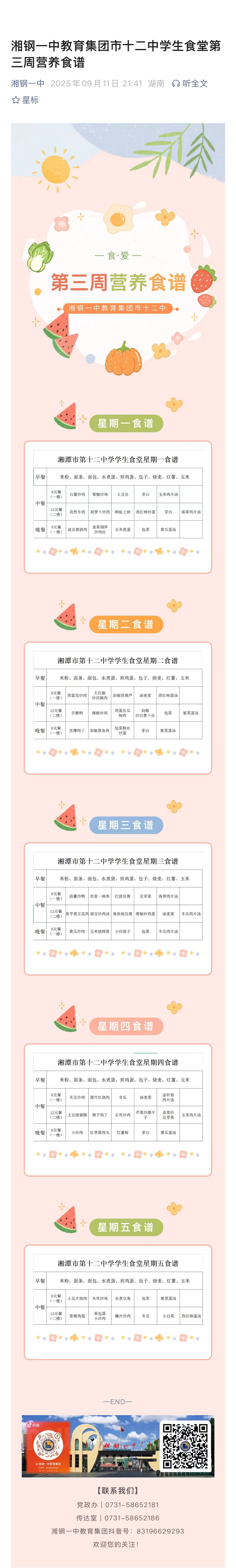湘鋼一中教育集團市十二中學生食堂第三周營養(yǎng)食譜