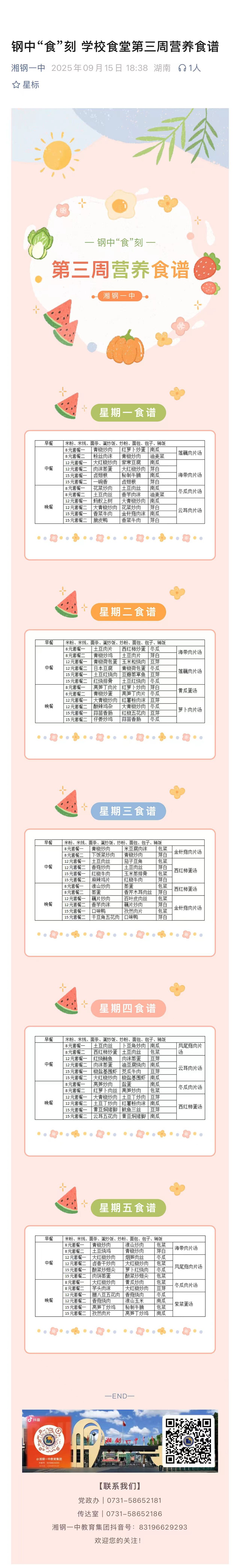 鋼中“食”刻 學(xué)校食堂第三周營養(yǎng)食譜