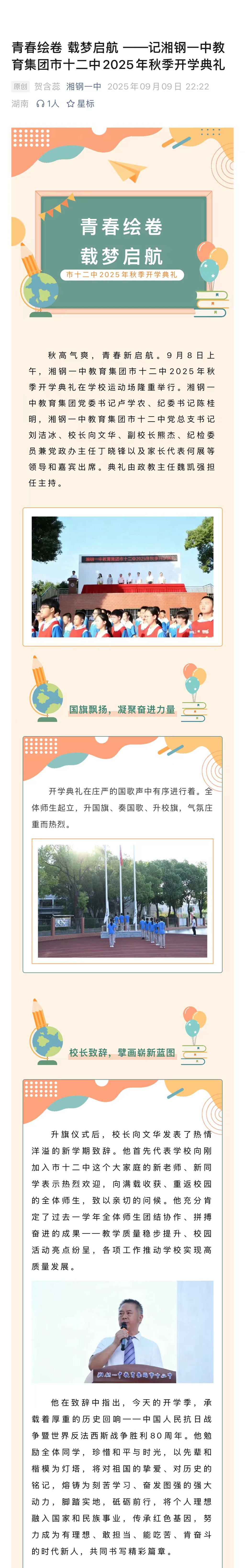 青春繪卷 載夢啟航 ——記湘鋼一中教育集團市十二中2025年秋季開學典禮