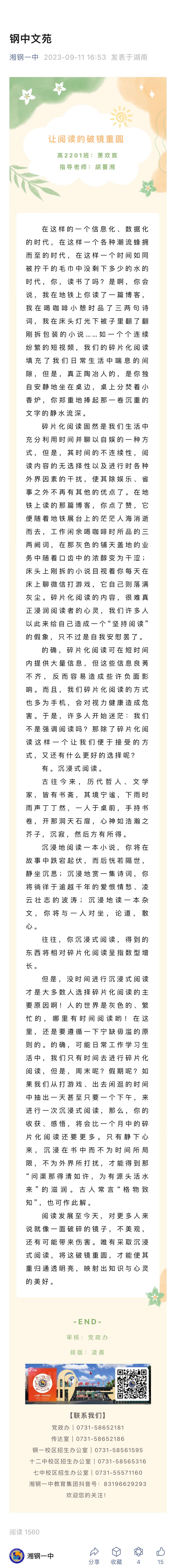 來源:微信公眾號 | 作者:湘鋼一中教育集團(tuán) | 發(fā)布時間: 2023-09-11 | 4970 次瀏覽 | 分享到: