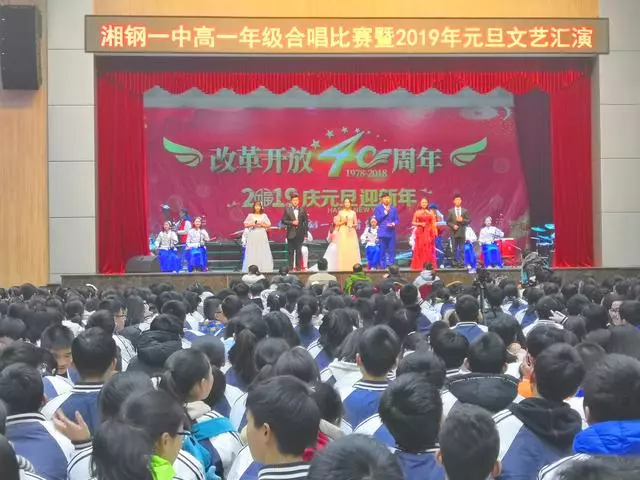 歡騰高歌迎新年,師生協(xié)力續(xù)新篇。為讓廣大師生度過一個(gè)歡樂、祥和的元旦,營(yíng)造積極向上、健康文明的校園文化, 12月29日,湘鋼一中高一年級(jí)合唱比賽暨2019年元旦文藝匯演在該校體育館隆重舉行。全校師生以及部分家長(zhǎng)共同歡聚一堂享受著一場(chǎng)視聽文化的盛宴大餐,在溫馨快樂的場(chǎng)景中度過辭舊迎新的難忘時(shí)刻。