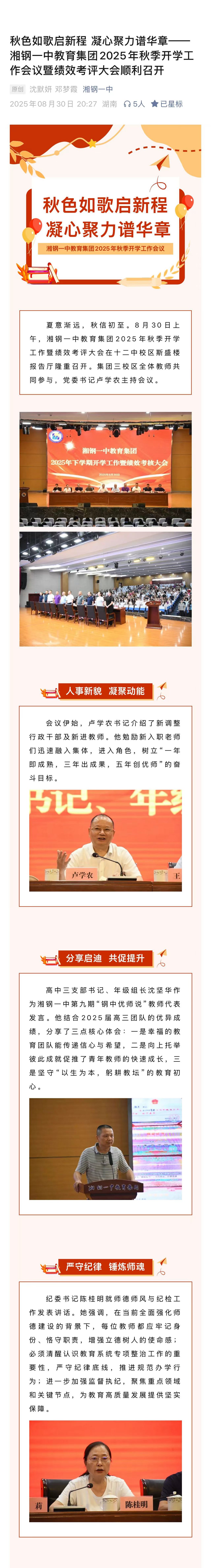 秋色如歌啟新程 凝心聚力譜華章——湘鋼一中教育集團2025年秋季開學工作會議暨績效考評大會順利召開